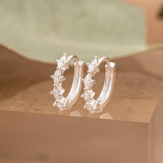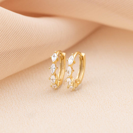 Diamond huggie hoop earrings, 14K Gold CZ cartilage hoop, 6mm, 8mm, 10mm hoop, girlfriend gift unique jewelry