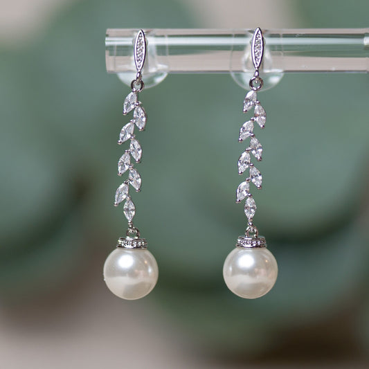Pearl earrings wedding, Pearl Earrings Drop, Pearl Earrings Dangle, Leaf Pearl earrings Rose gold Silver, Pearl Earrings for Bridesmaids