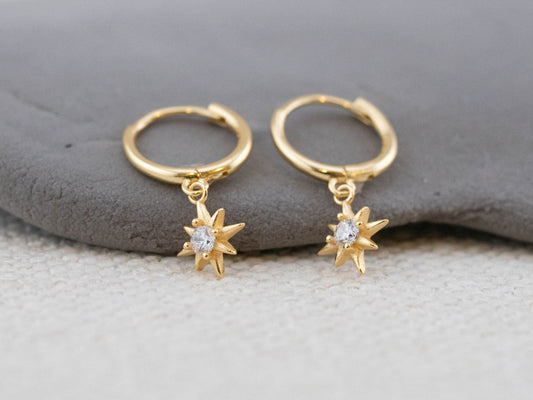 Celestial huggie hoop earrings set, small 14K gold filled huggie hoop stack, non tarnish cartilage earrings, star stud, matching-gift-set