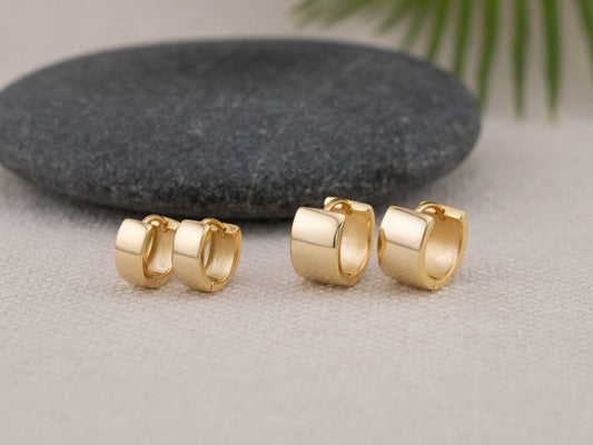 Huggie earrings, small hoop earrings set, tiny hoop earrings, 925 solid sterling silver chunky mini hoops, gold huggie sleeper tapered hoops