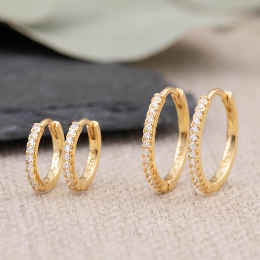 Diamond huggie hoop earrings, 14K Gold CZ cartilage hoop, 6mm, 8mm, 10mm hoop, girlfriend gift unique jewelry