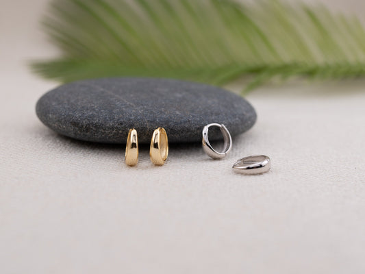 Small Tapered hoop earrings sterling silver 18K gold vermeil