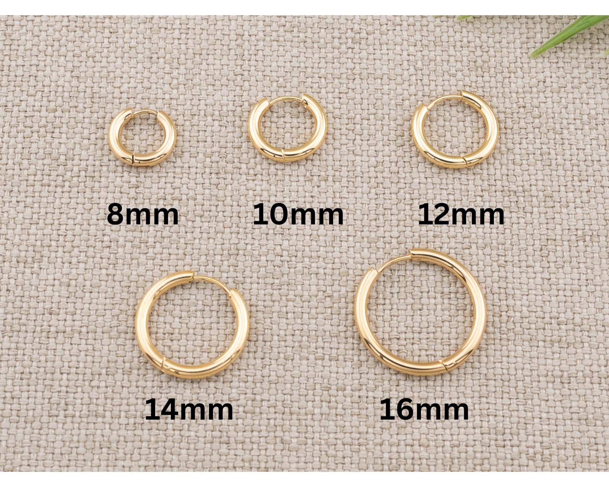 Our small huggie hoop earrings set of 3 pairs in variety of sizes is here! They are dainty but durable, perfect for layering in stacks, and their chucky thick shape make them stand out. Their small or medium size makes them easy to style. Also their comfortable fit makes them a great choice for all-day wear and even sleep in them. These small hoops / huggies are 18 K gold filled, hypoallergenic, tarnish free and waterproof !
