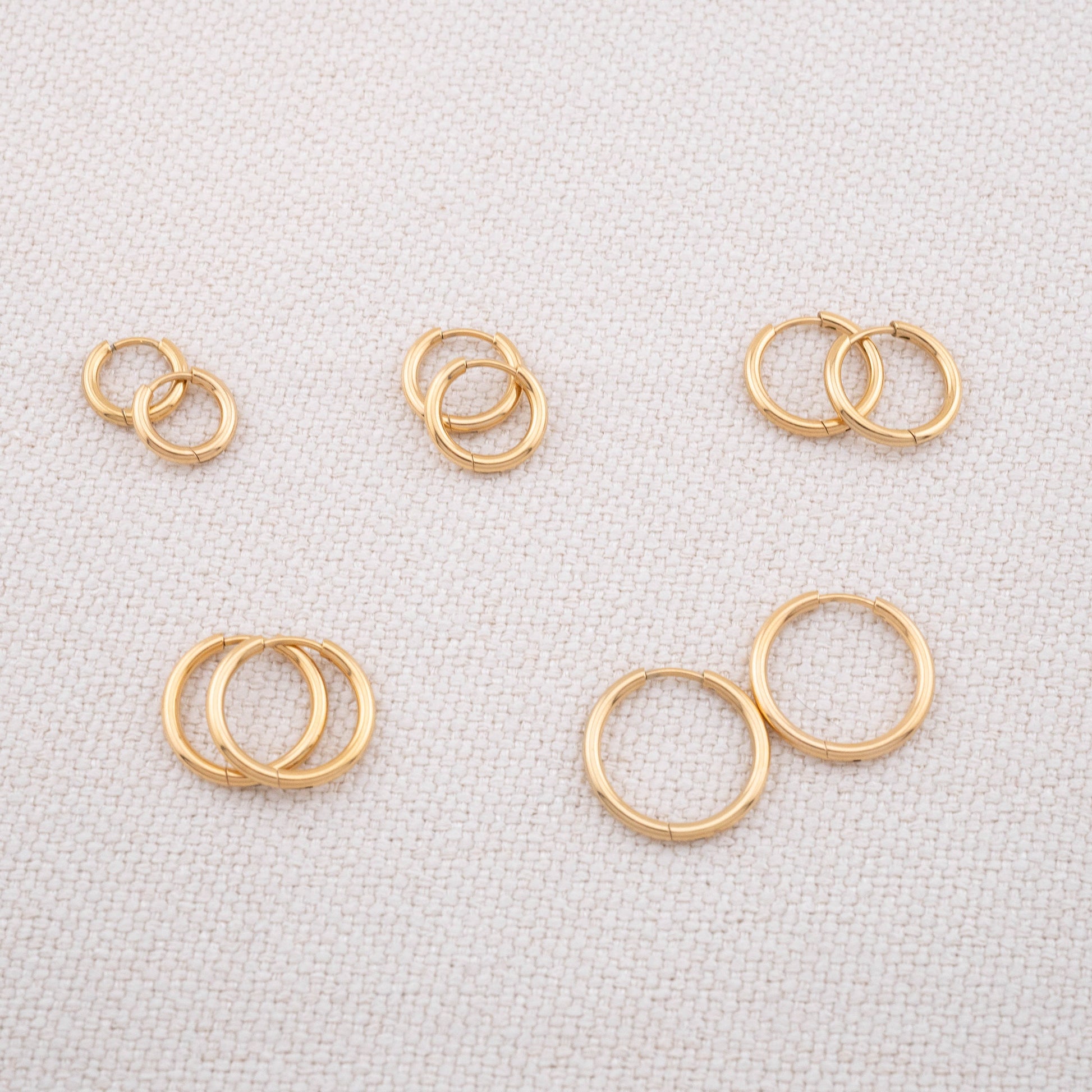 Your everyday stack, all in one set! This set includes 3 pairs of chunky huggie hoops in varying sizes—designed to mix, match, and layer your multiple piercings. The bold, rounded shape makes a subtle statement, while the small-to-medium sizes keep them easy to wear every day.