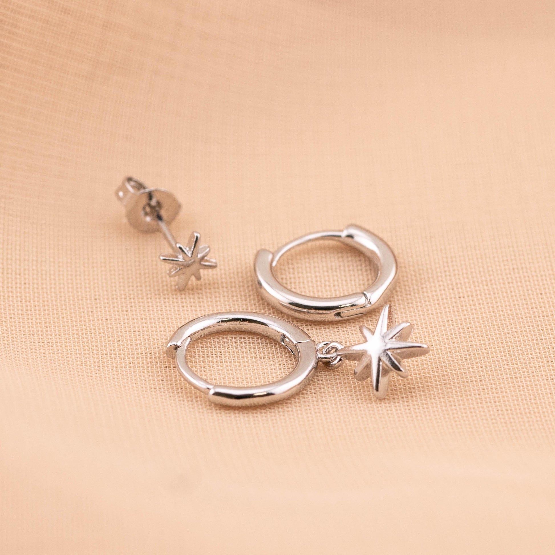 Celestial huggie hoop earrings set, small 14K gold filled huggie hoop stack, non tarnish cartilage earrings, star stud, matching-gift-set
