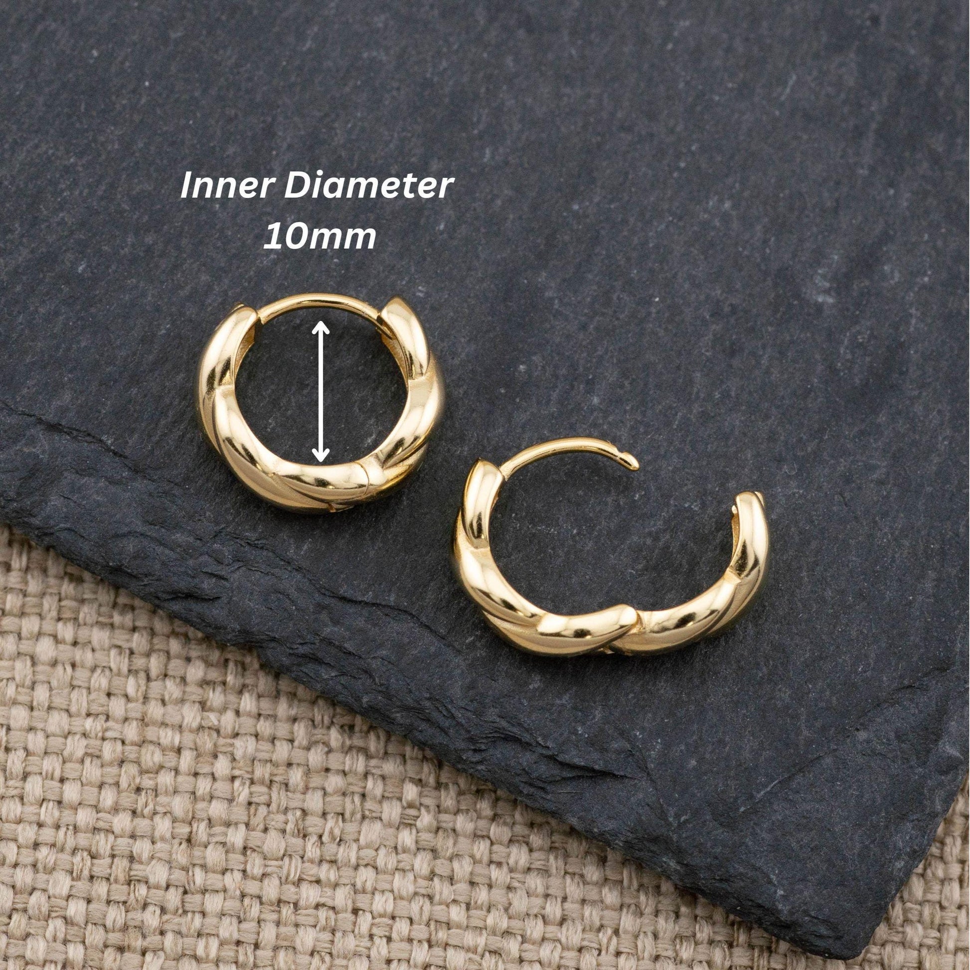 Chunky hoop earring, 14K gold twist small huggie hoop, hinge hoop clicker, 10mm hoops for stacking, hypoallergenic tarnish free, gift ready
