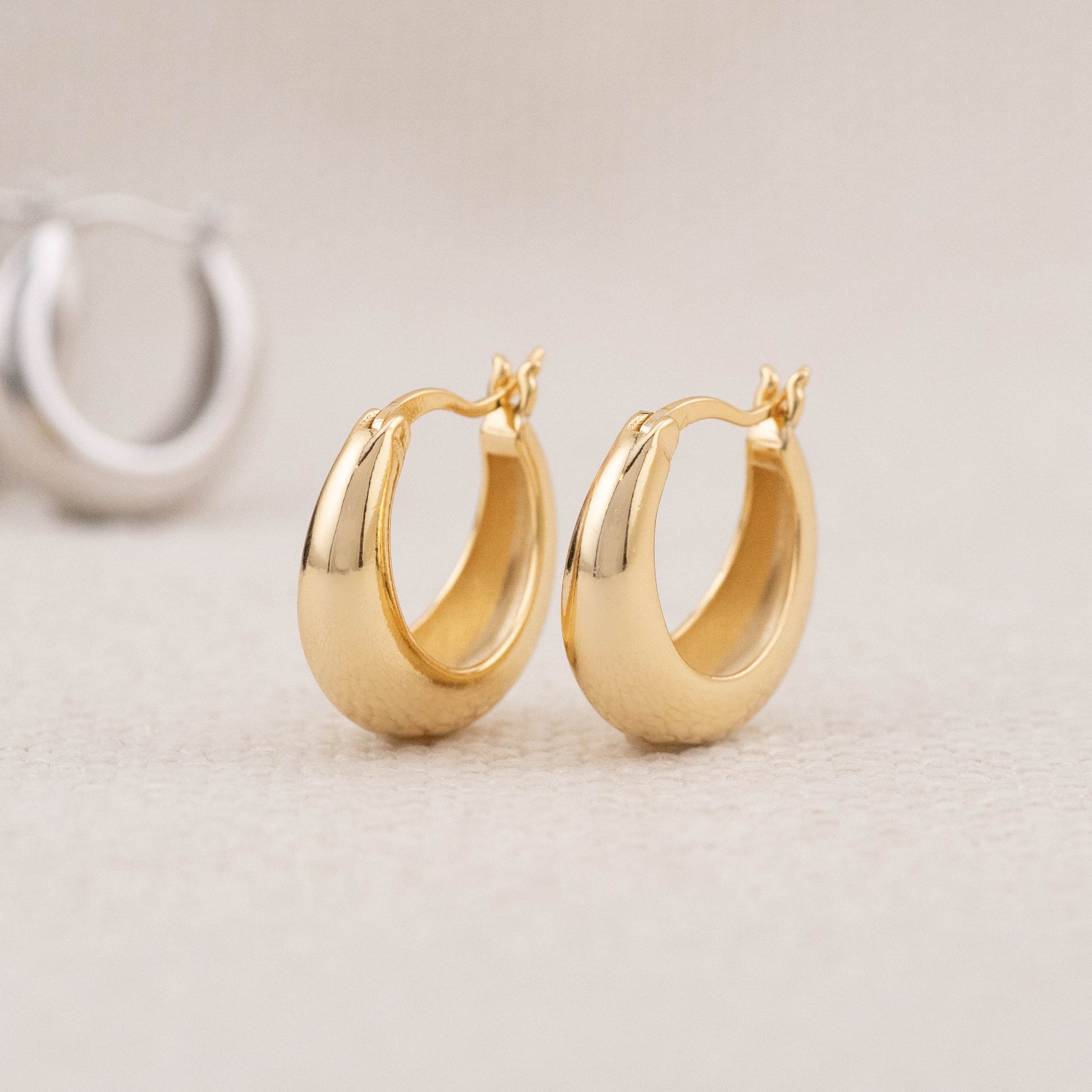 Chunky small gold hoops, Thick hoop earrings, chubby simple minimalist waterproof jewelry, Christmas giftful boxed, modern graduation gift
