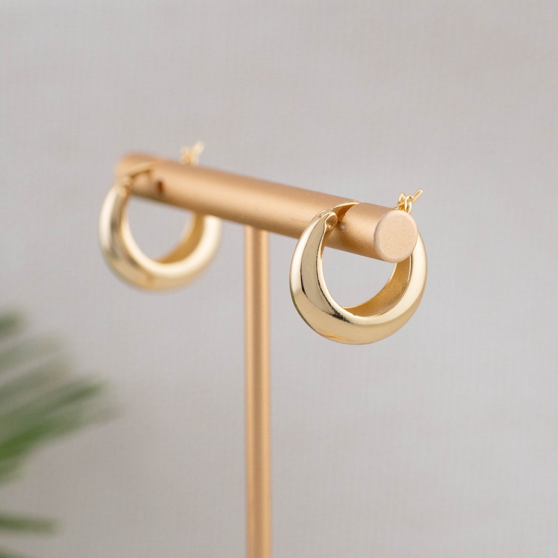 Add a classic touch to your outfit with our lightweight thick chunky gold hoop earrings! Wear these tapered hoops solo or stack them with other simple everyday earrings. Crafted from solid sterling silver with a 14k gold-filled finish, these sturdy, high-quality pieces are hypoallergenic and tarnish-free. They make ideal small gifts for any occasion, including Christmas, graduation, or birthdays for your loved ones—or just for yourself!