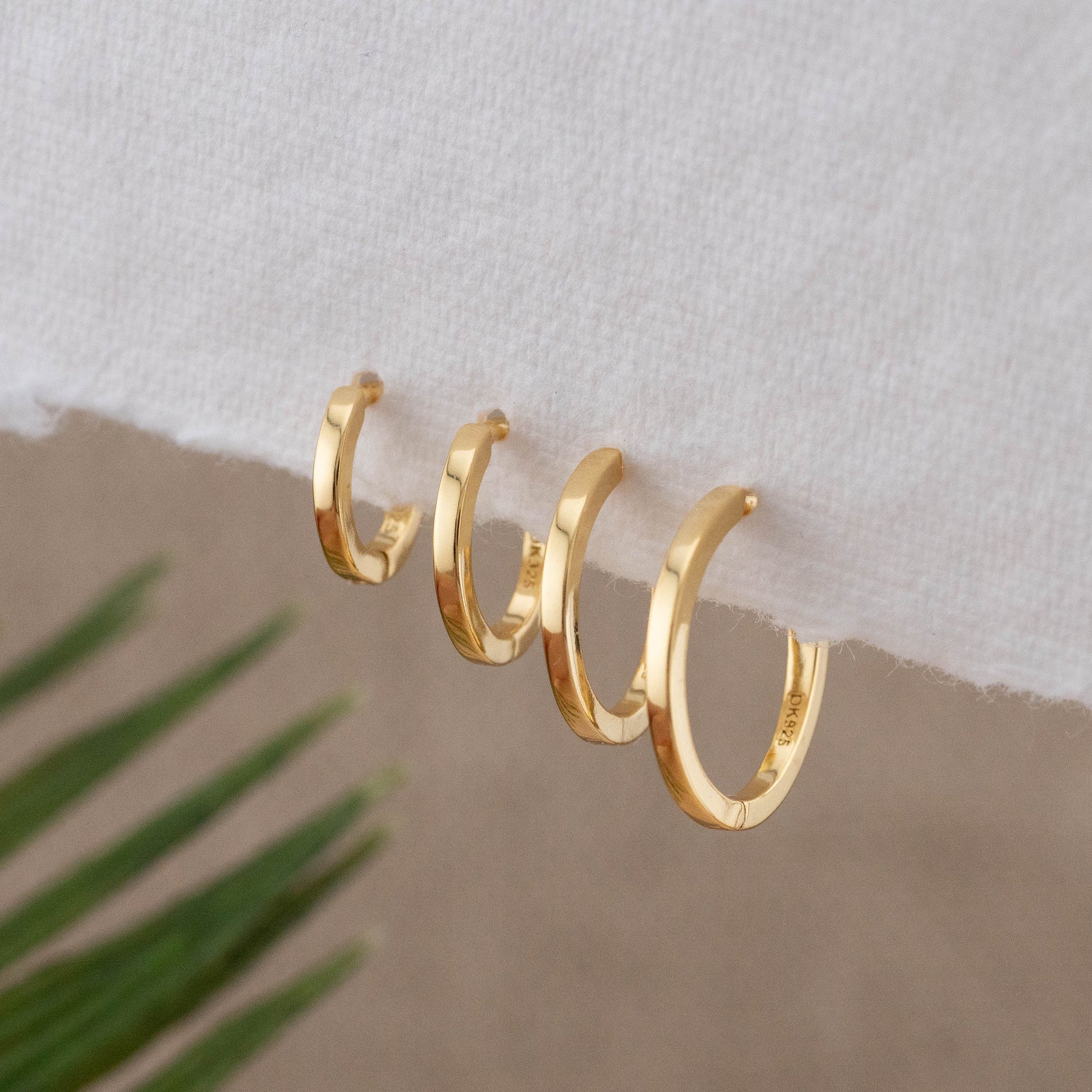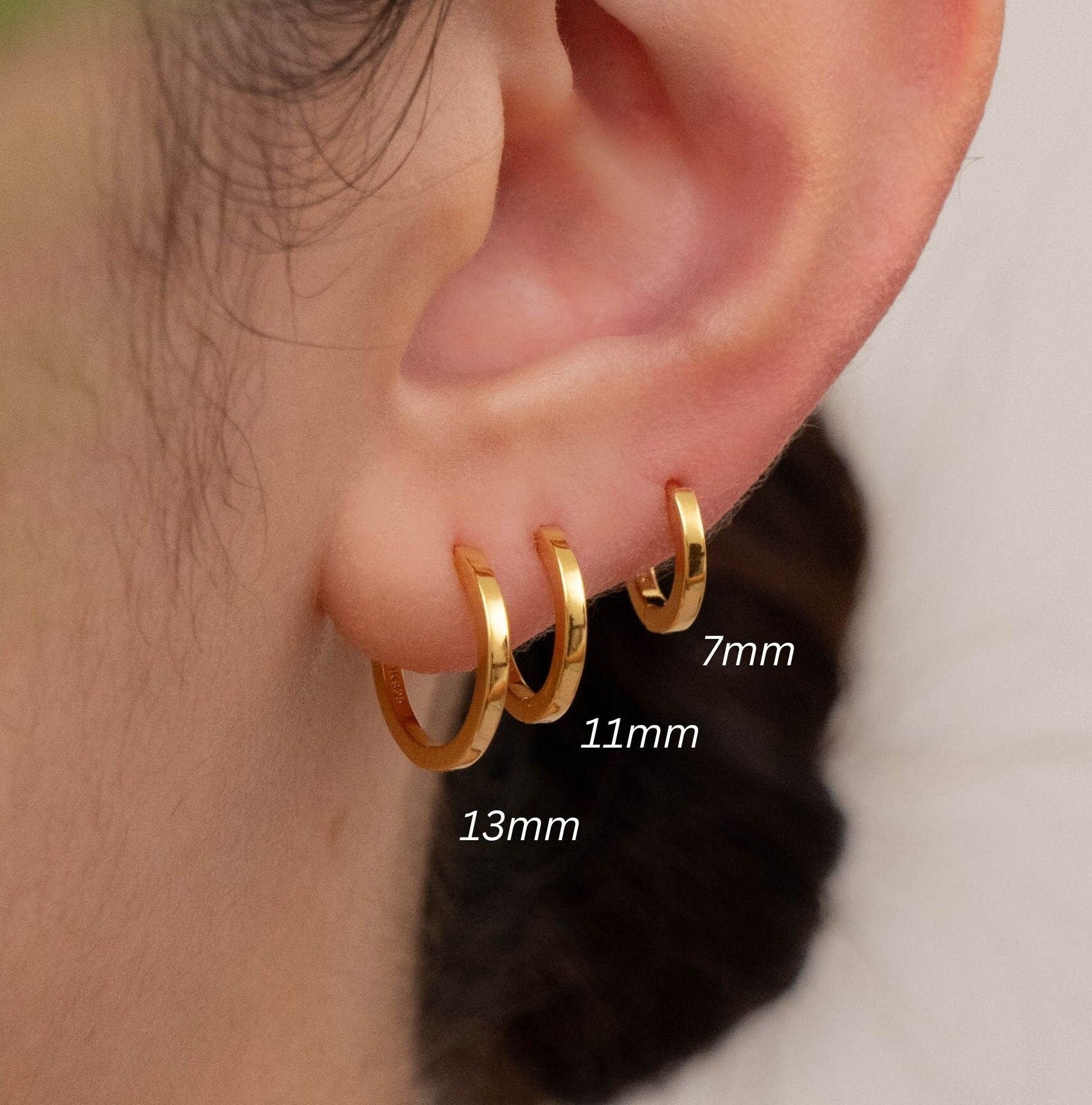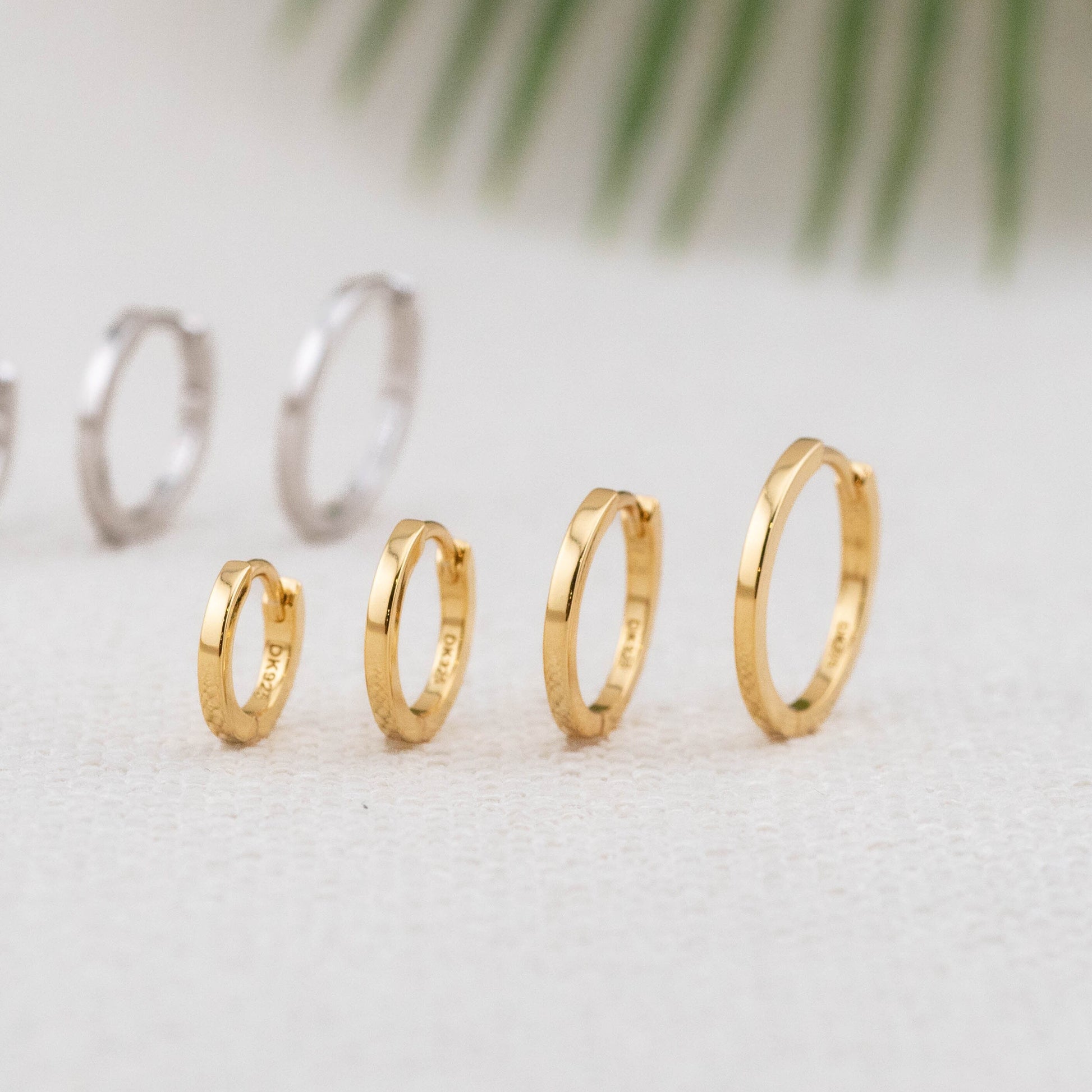 Elevate your style with our durable thin stacking huggie hoop earrings, available in gift-ready sets of 2 or 3 pairs. Perfect for layering, these thin small hoops are hypoallergenic, tarnish-free, and waterproof. Made from sterling silver or 18K gold filled, they’re ideal for everyday wear and even sleeping in. Enhance your simple huggie hoops!