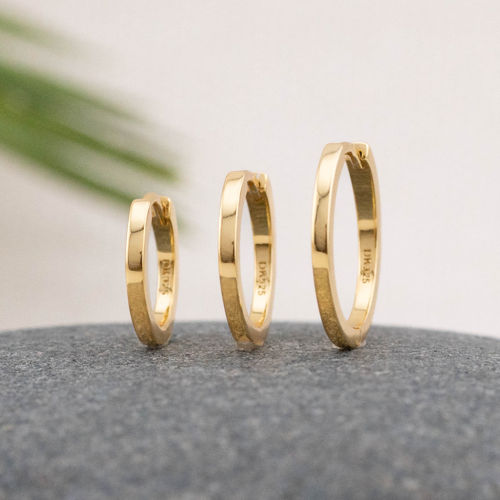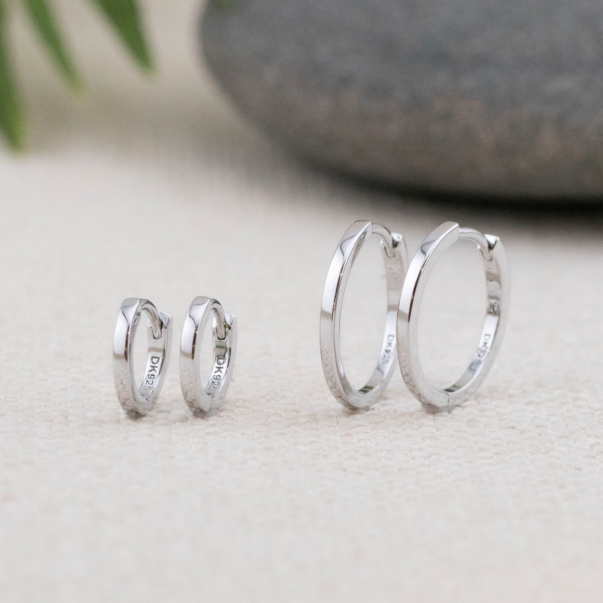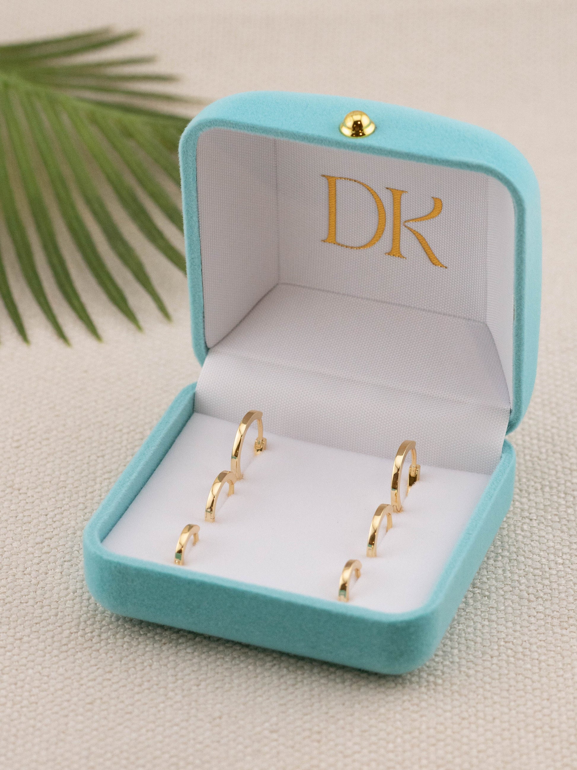 Elevate your style with our durable thin stacking huggie hoop earrings, available in gift-ready sets of 2 or 3 pairs. Perfect for layering, these thin small hoops are hypoallergenic, tarnish-free, and waterproof. Made from sterling silver or 18K gold filled, they’re ideal for everyday wear and even sleeping in. Enhance your simple huggie hoops!