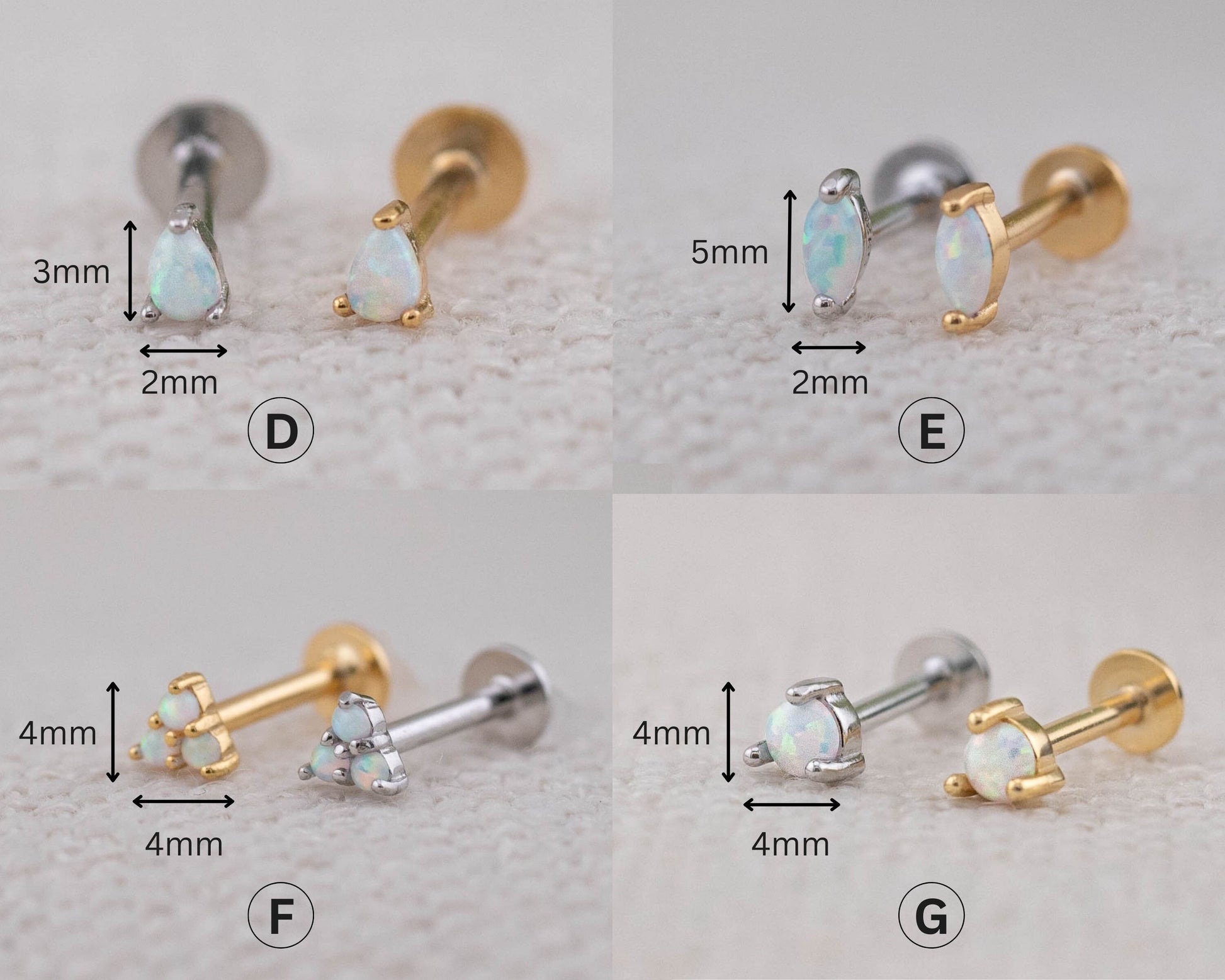 Our opal flat back earrings are dainty and completely waterproof! The 18G flat back design ensures comfort fit, making them ideal for everyday wear as well as special events.
