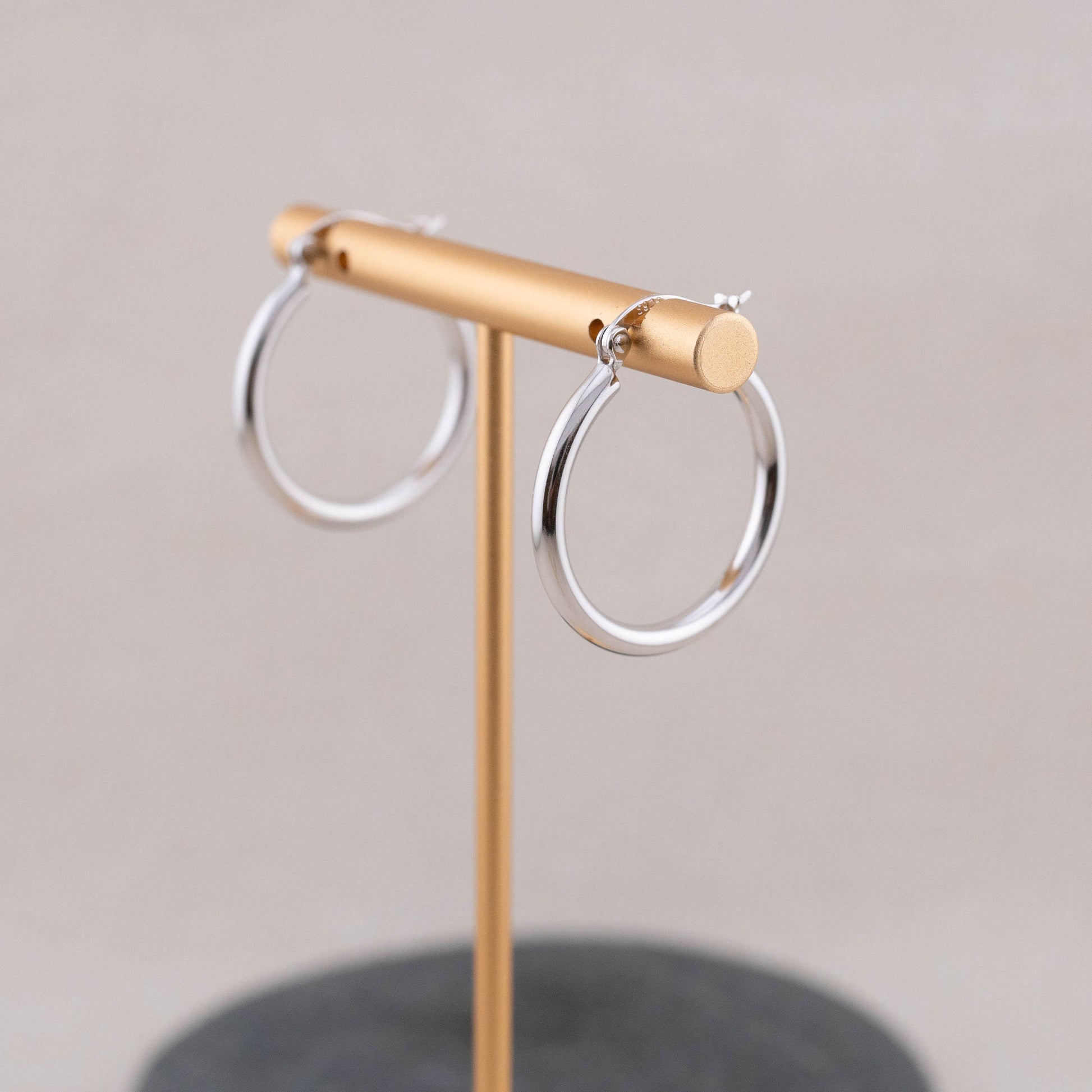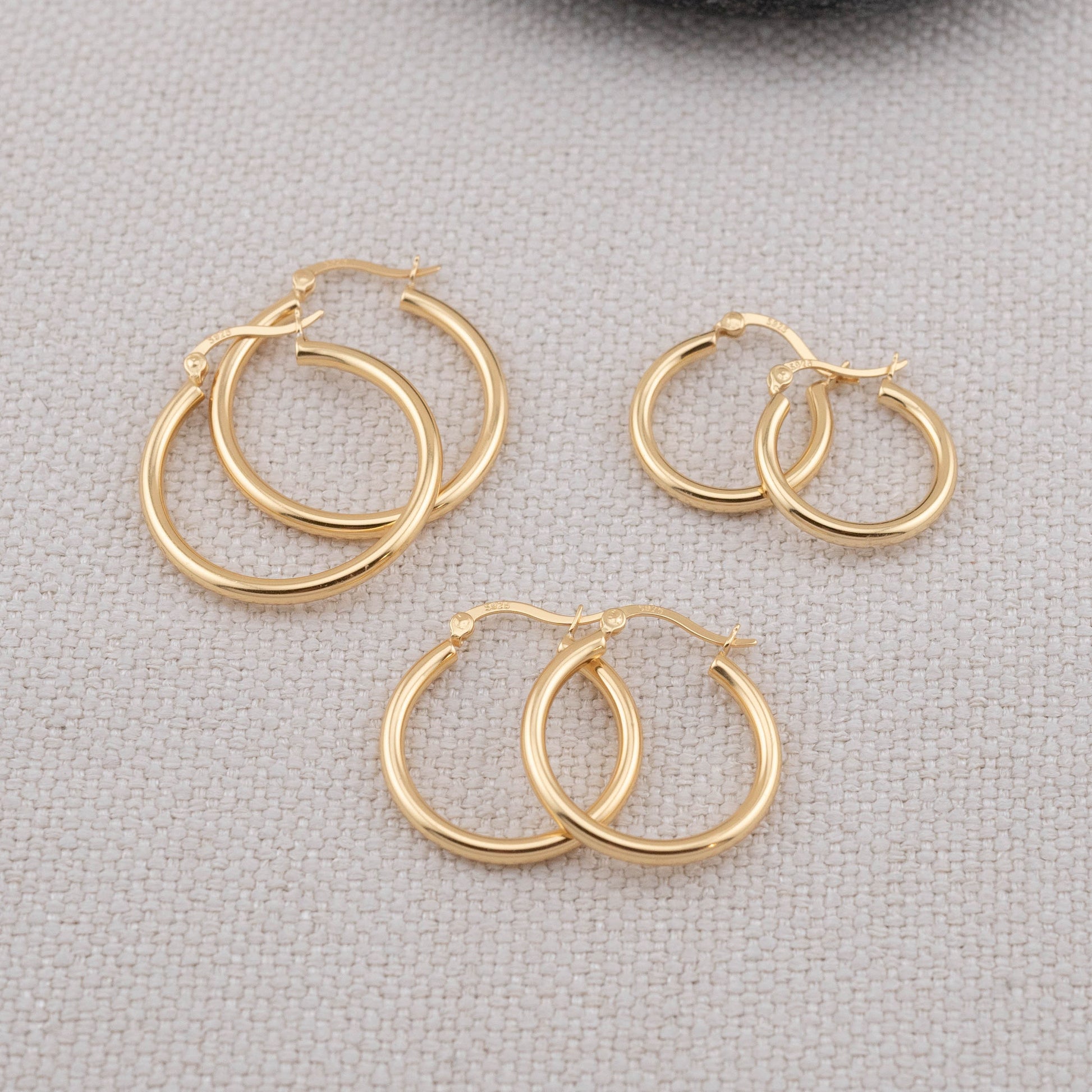 Our 14K gold filled / sterling silver bold thick hoops earrings set of 3 pairs is here! They come in small (15mm), medium (20mm), and large (25mm) sizes to fit any of your everyday outfit! They are durable, perfect for layering in stacks, and their chucky thick shape make them stand out. These hoops are 14 K gold filled, solid sterling silver as its core material, hypoallergenic, tarnish free and waterproof !