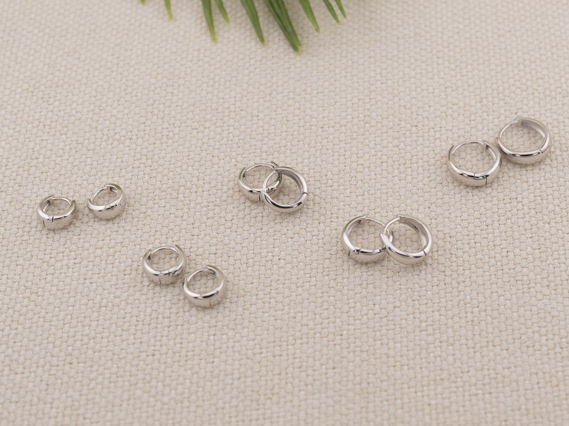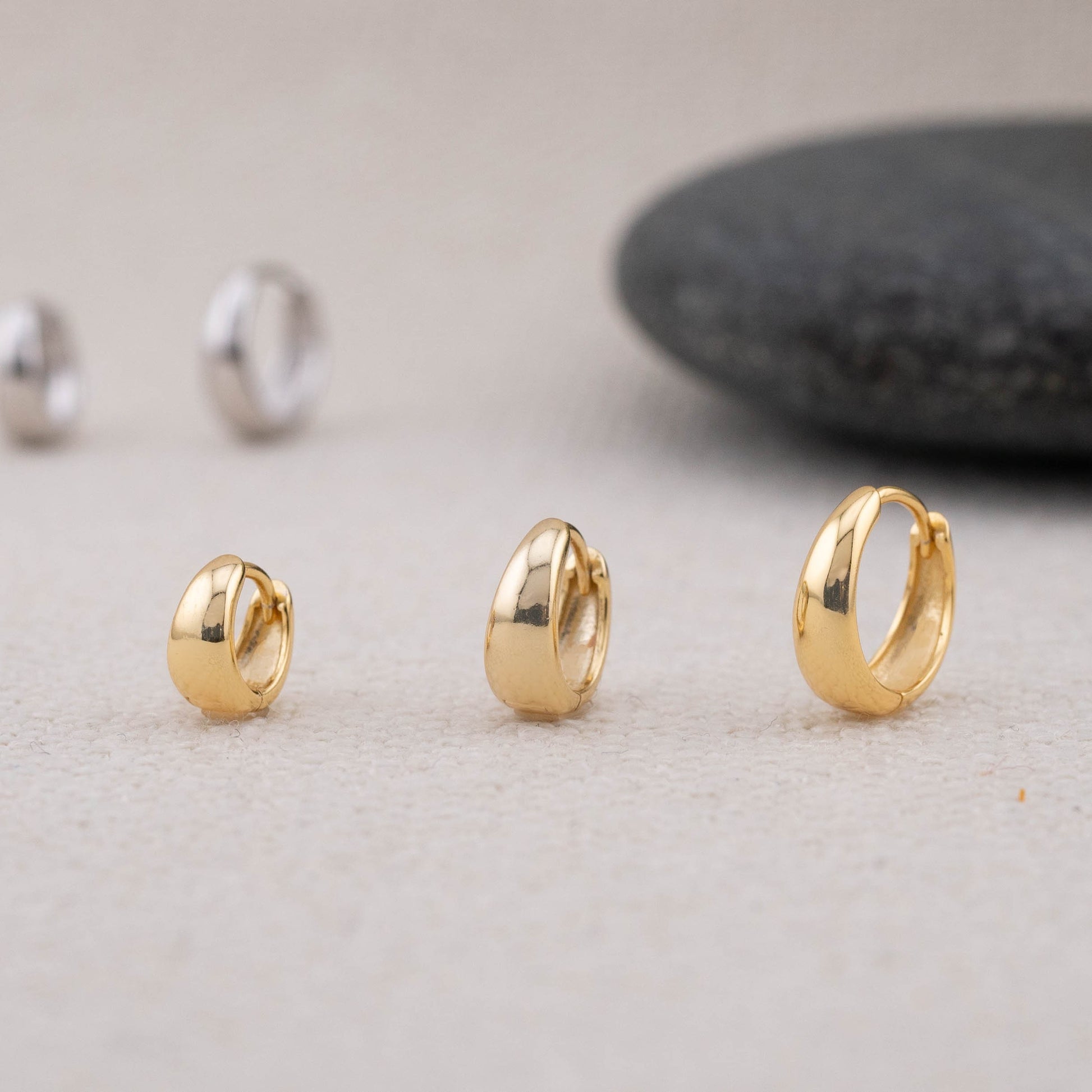 Introducing our small huggie hoop earrings 6mm, 7mm, 8mm, 9mm, 10mm sold as 2 pairs set or 1 pair set! They are delicate, comfortable sleeper hoops for everyday wear, yet their chucky thickness and tapered shape make them stand out. Made with solid 925 sterling silver , 18 K gold filled (core sterling silver)