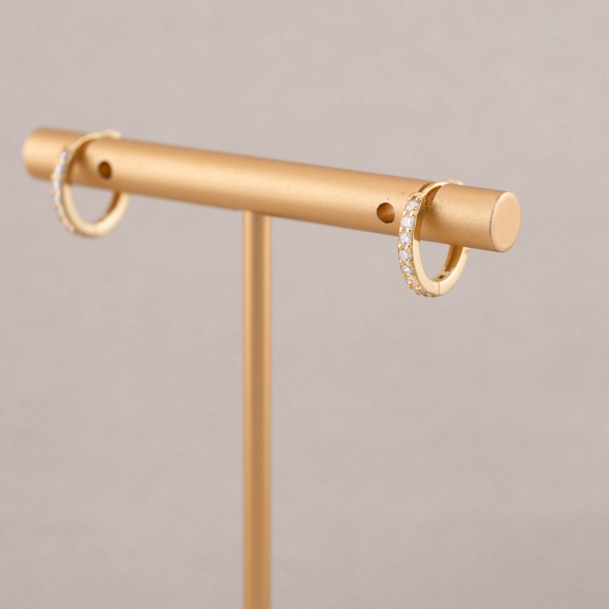 These small huggie 18 K gold hoop earrings or 925 sterling silver huggy hoops are simple minimalist style for everyday wear. These pave earrings are made with high quality cz diamond stones and comes in many sizes: 5mm, 6m, 7mm, 8mm, 9mm.