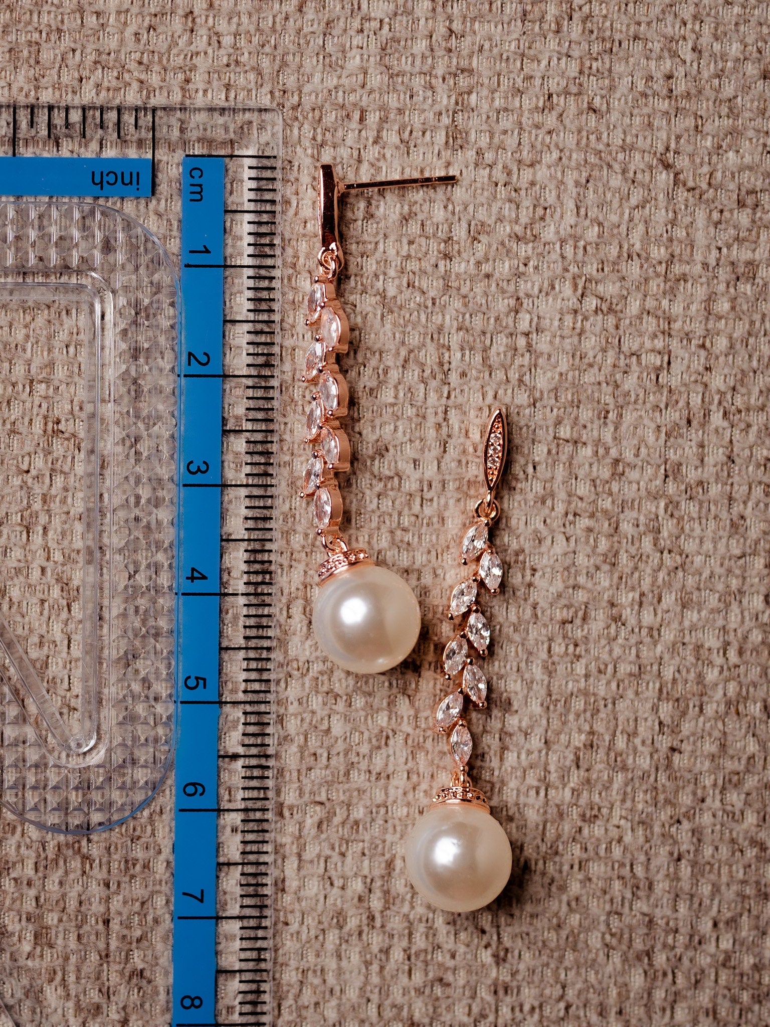 Pearl earrings wedding, Pearl Earrings Drop, Pearl Earrings Dangle, Leaf Pearl earrings Rose gold Silver, Pearl Earrings for Bridesmaids