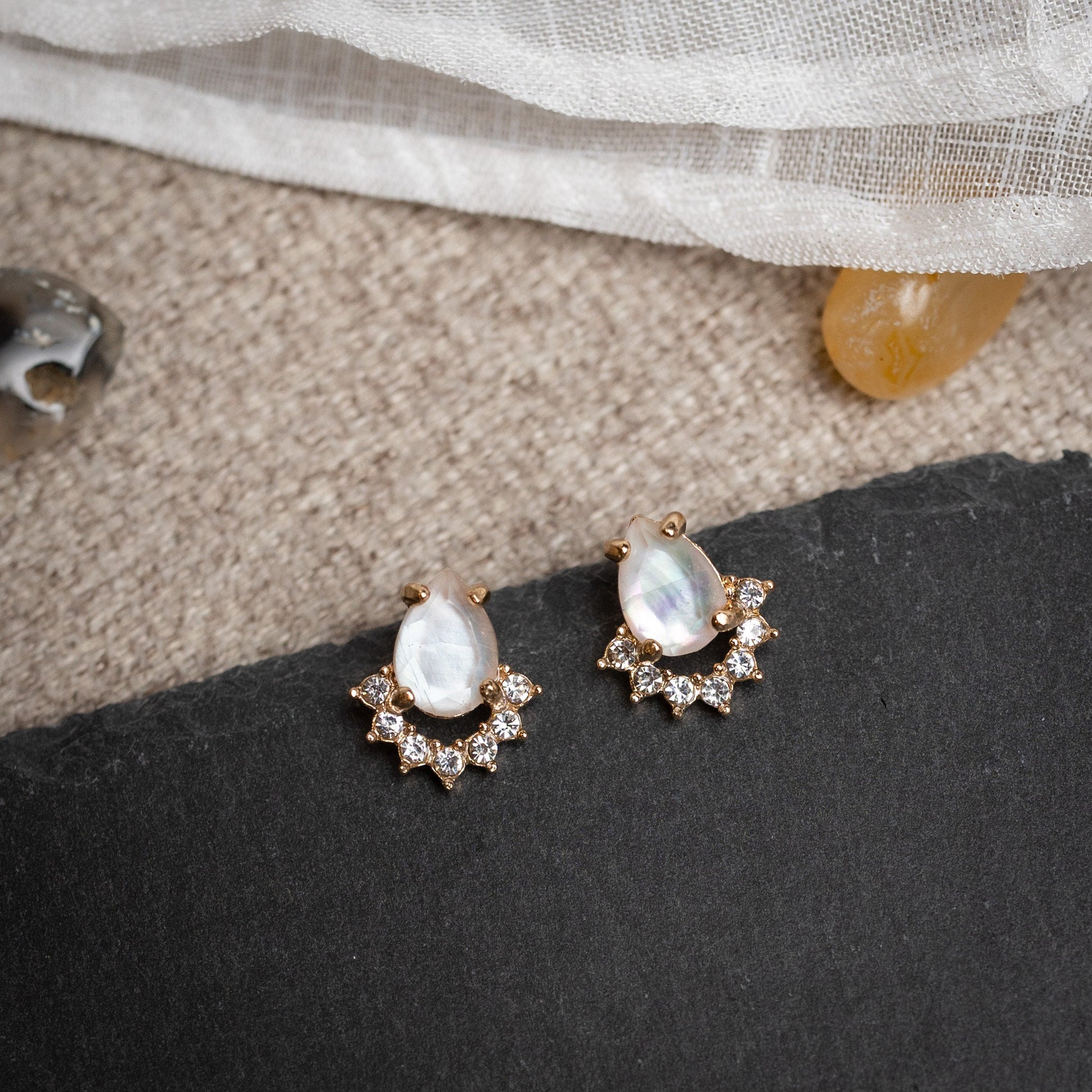 - You have found the perfect stud earrings with a statement, but delicate moonstone. These white moonstone stud earrings will go with every dress or outfits of your choice!