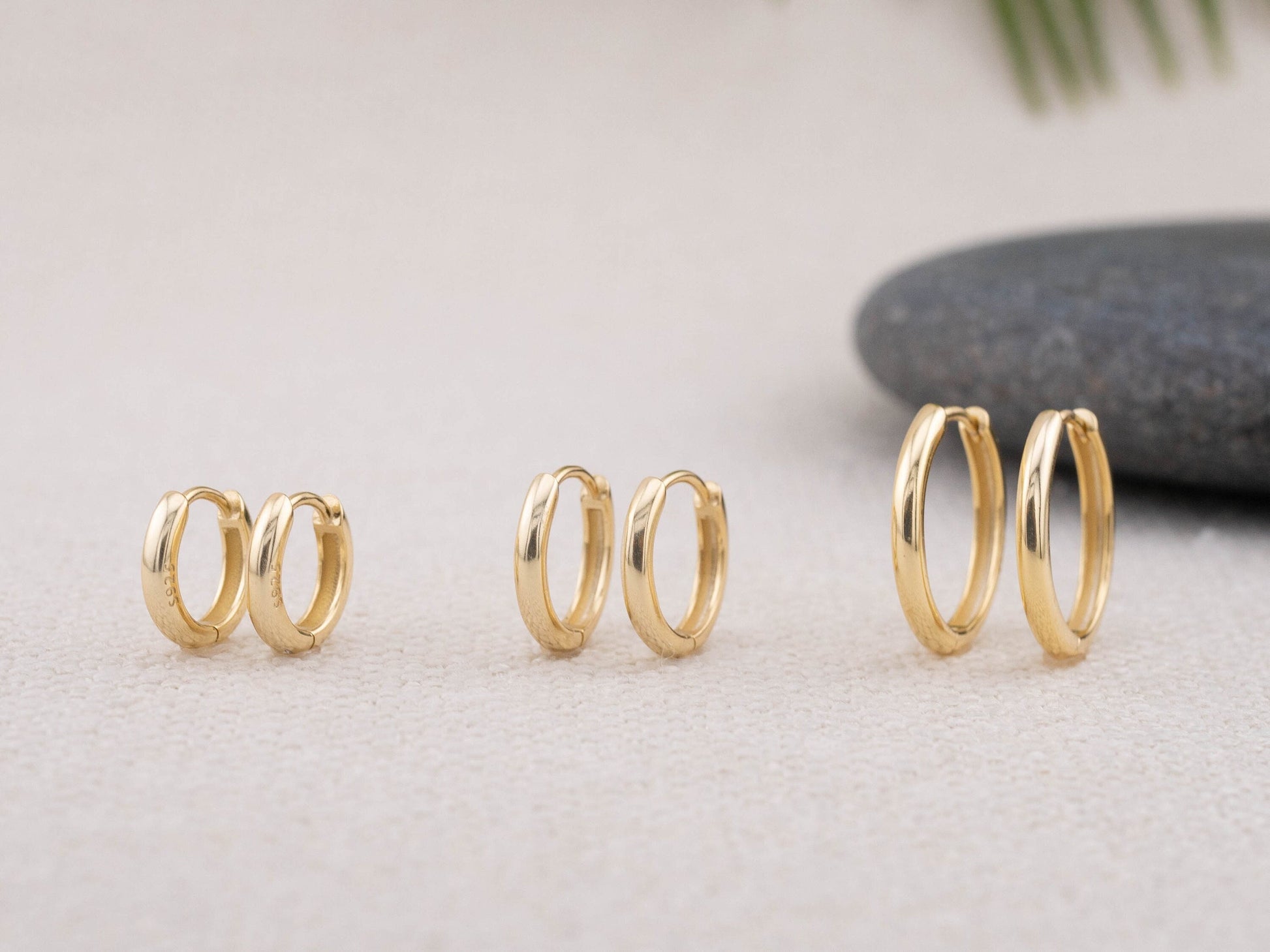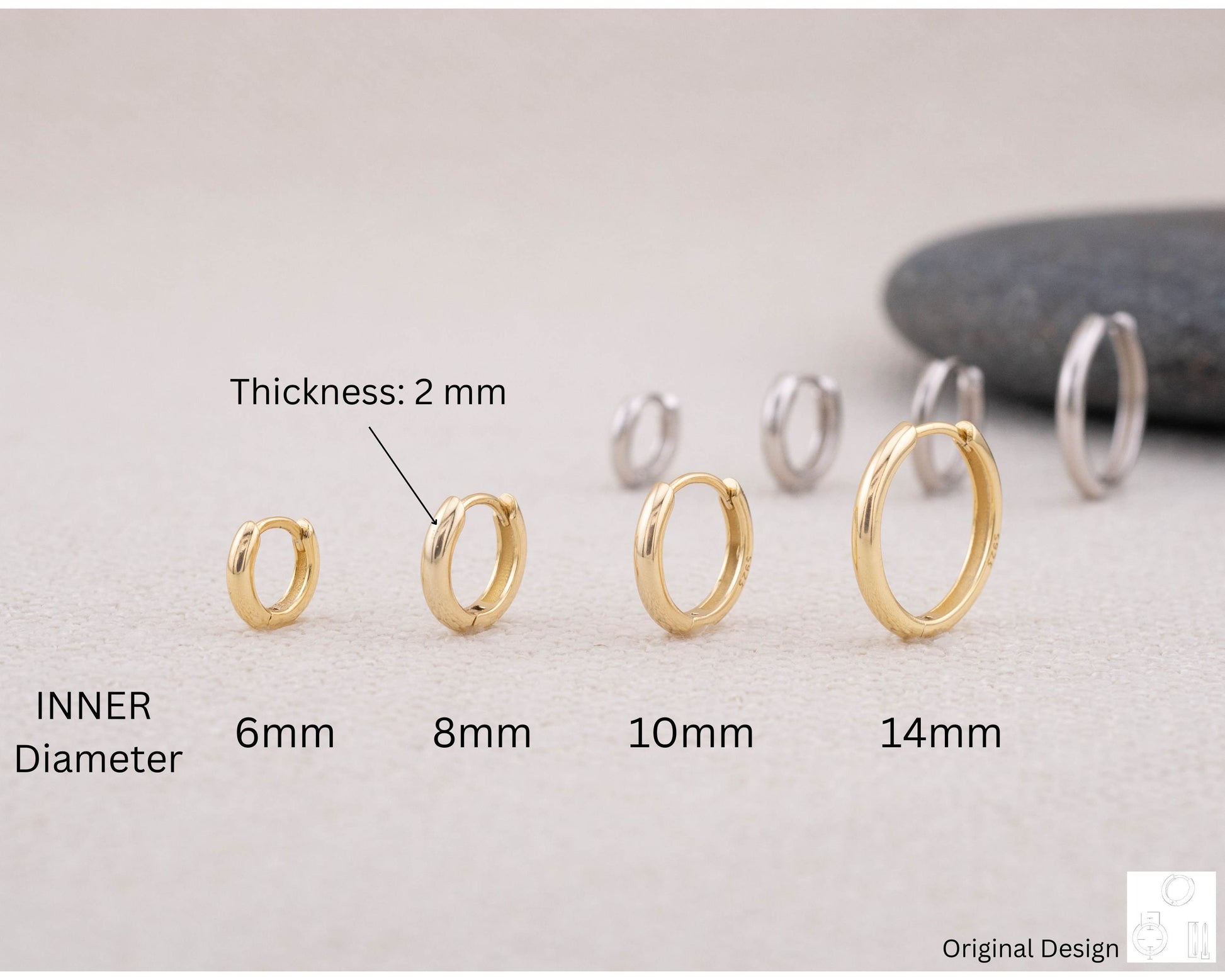 Introducing our minimalistic huggie hoop earrings 6mm, 8mm, 10mm, and 14mm sold as 2 pairs or 3 pairs set! They are delicate, comfortable sleeper hoops for everyday wear! Made with solid 925 sterling silver , 14 K gold filled (core sterling silver)