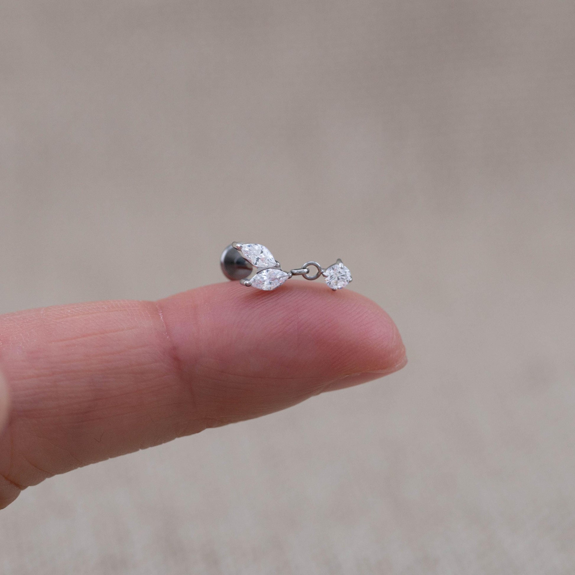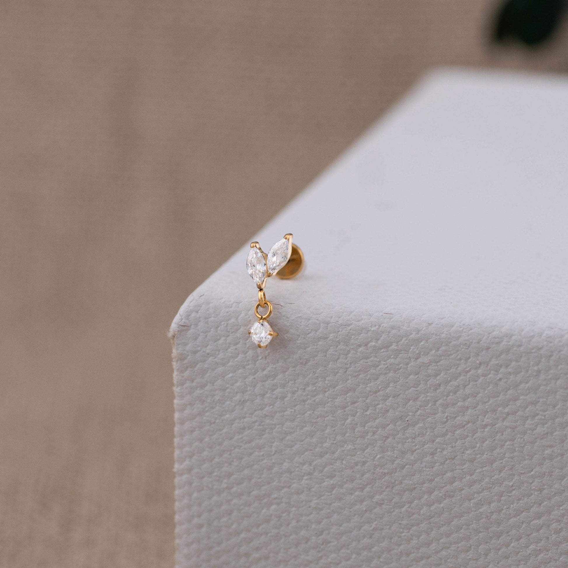 Meet your very tiny cartilage or helix flatback earrings made with surgical grade titanium! These 18G flat back design ensures comfort fit, making them ideal for everyday wear on your ear stack. Dainty small premium CZ leaf design will make your piercing stand out effortlessly!