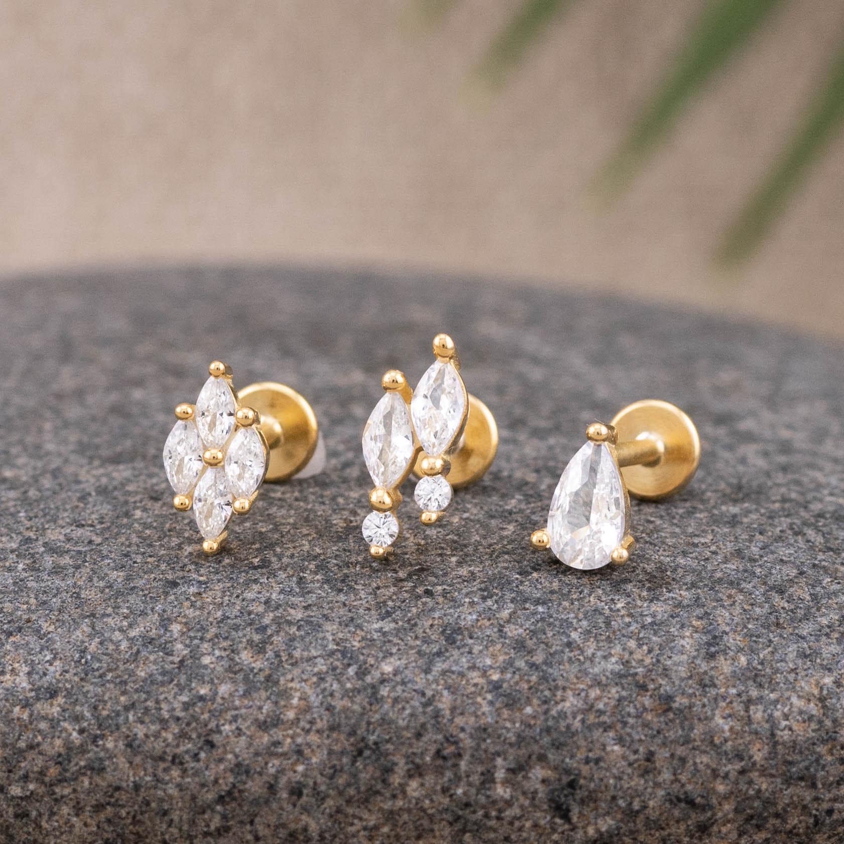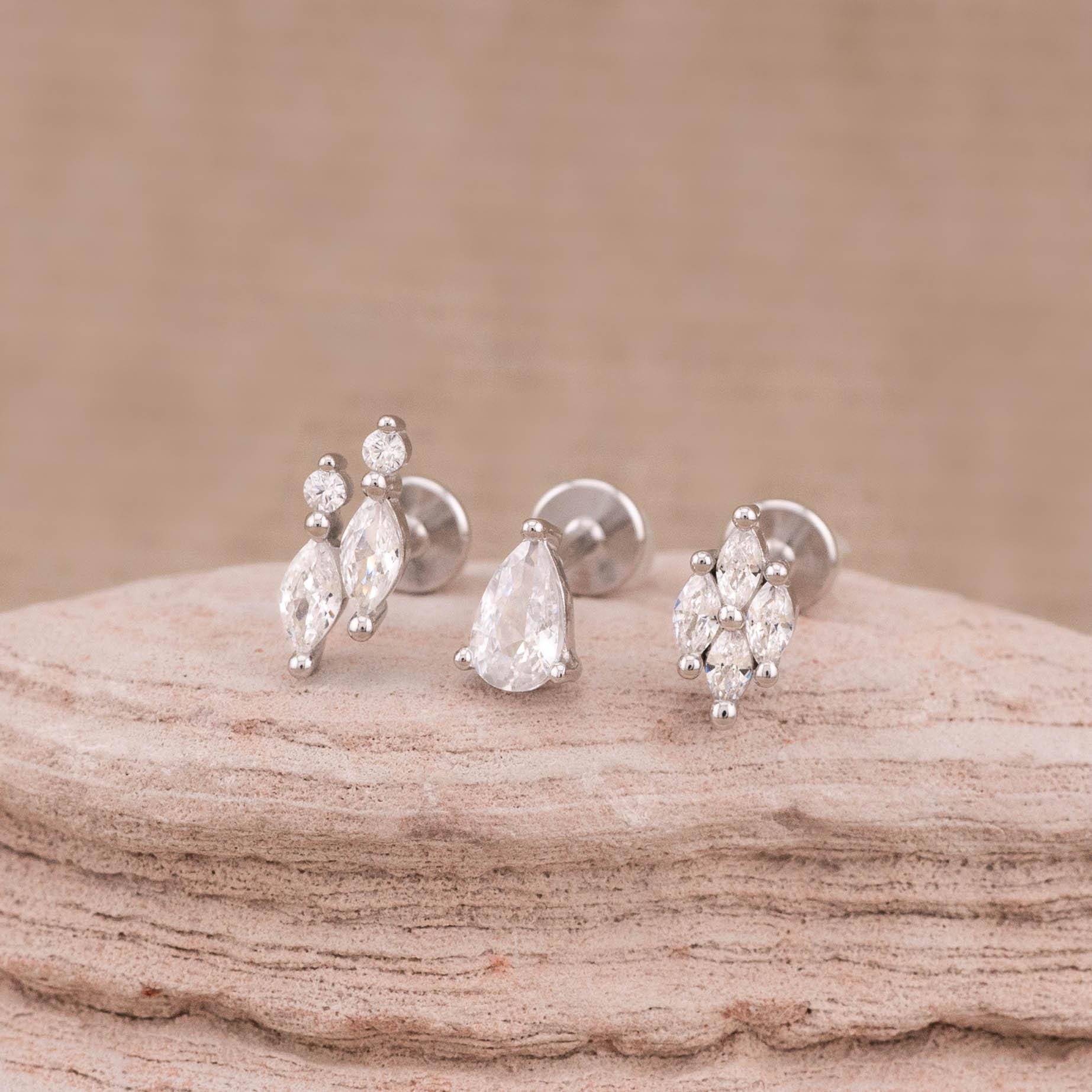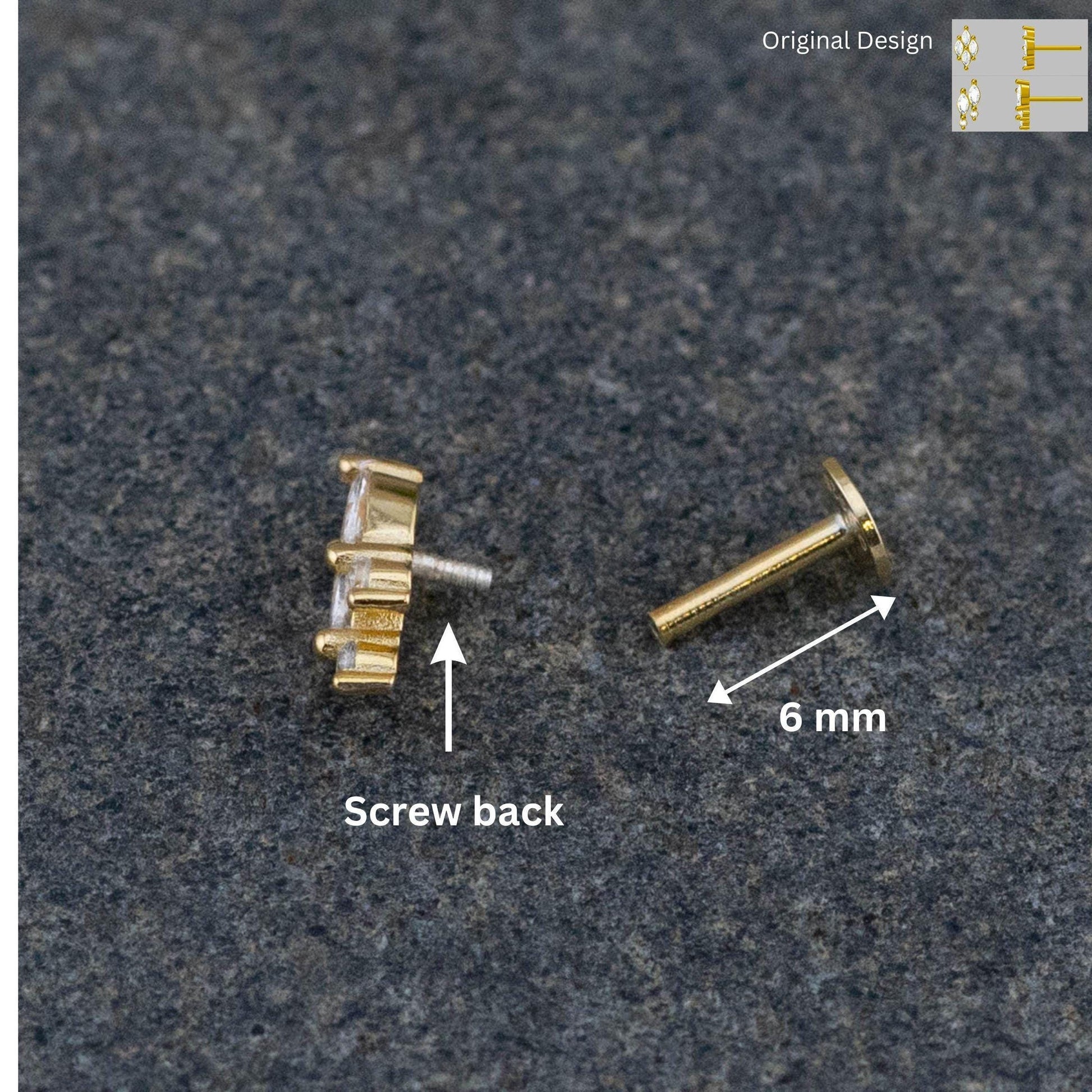 These tiny 18G flat back studs are made for low-key sparkle that stays put. Perfect for lobe, cartilage, tragus—anywhere you stack. Crafted from solid sterling silver with your choice of 14K gold fill or silver finish.