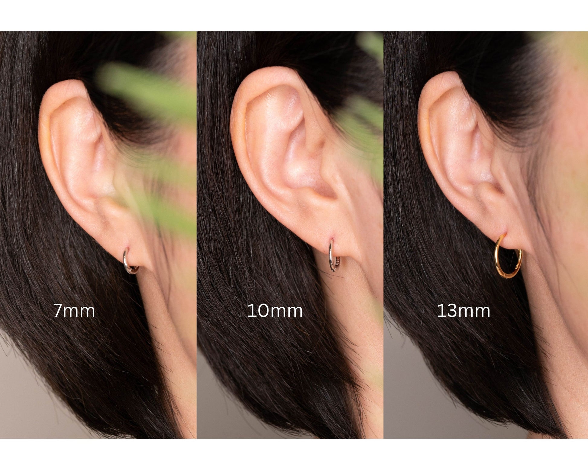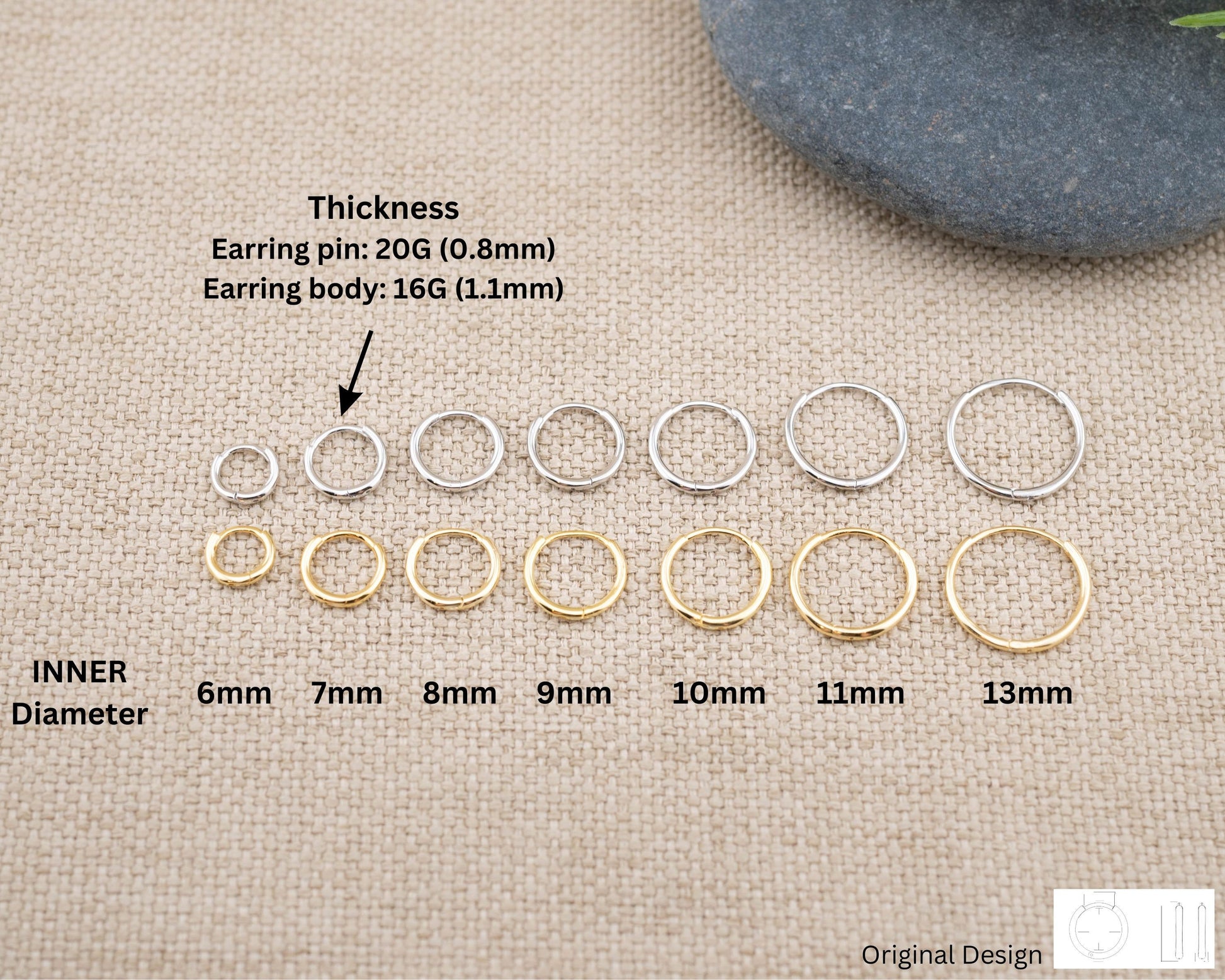 Our stacking small to medium huggie hoop earrings are sold as 1 pair, 2 pairs, or 3 pairs sets! They are perfect for layering and their delicate thin shapes make it great for everyday wear and even sleep in them! Made of sterling silver, or 18 K gold filled, hypoallergenic, tarnish free and waterproof !