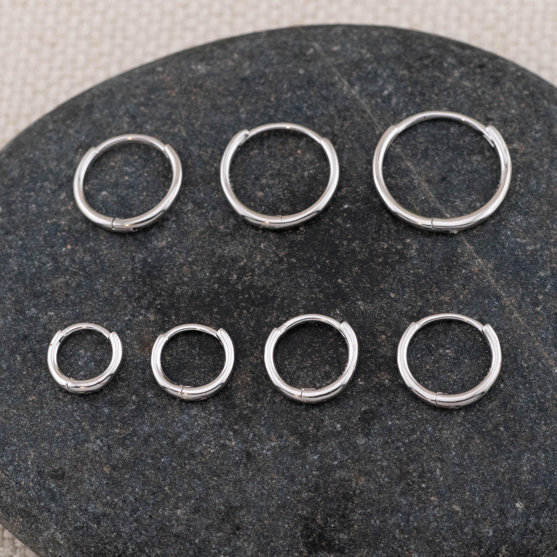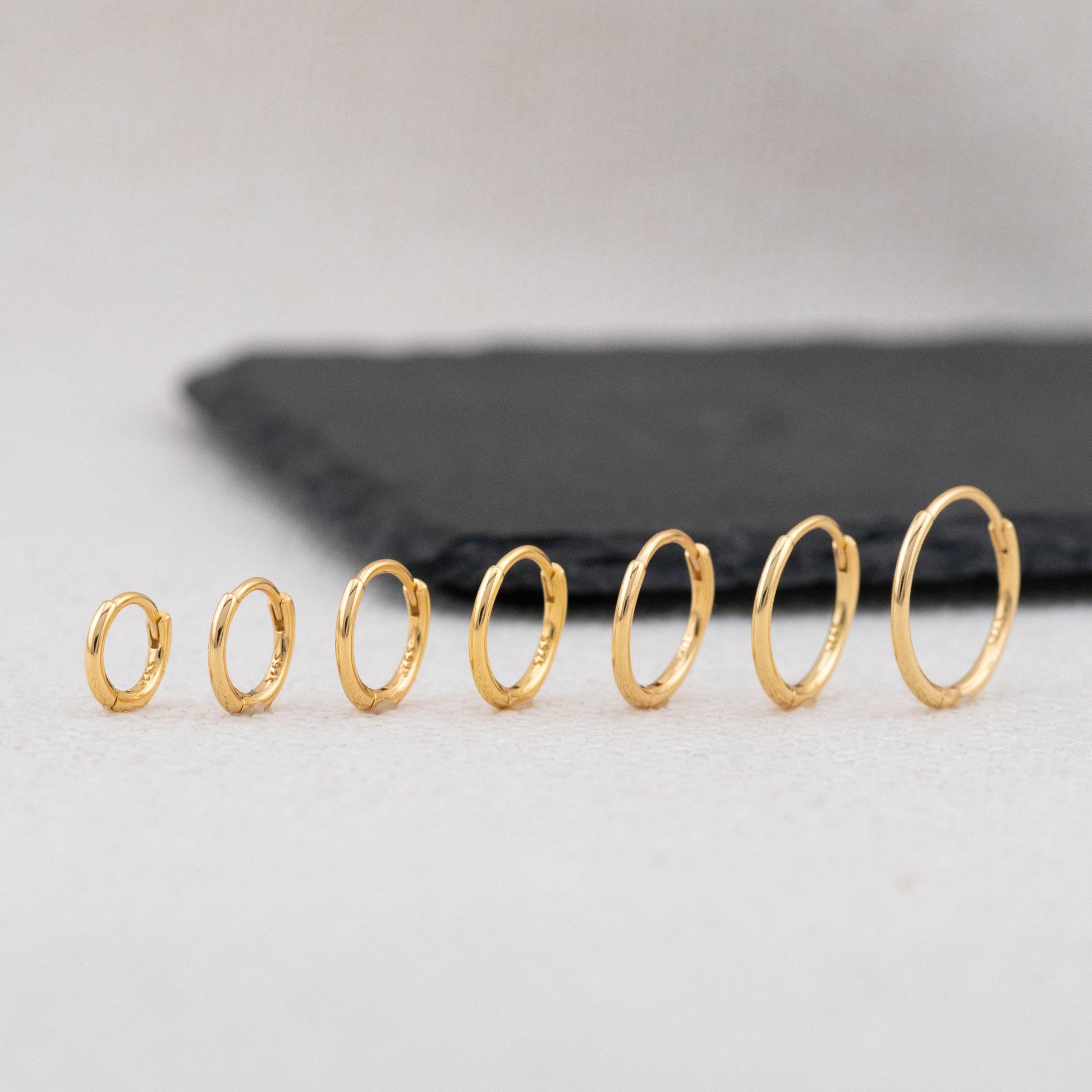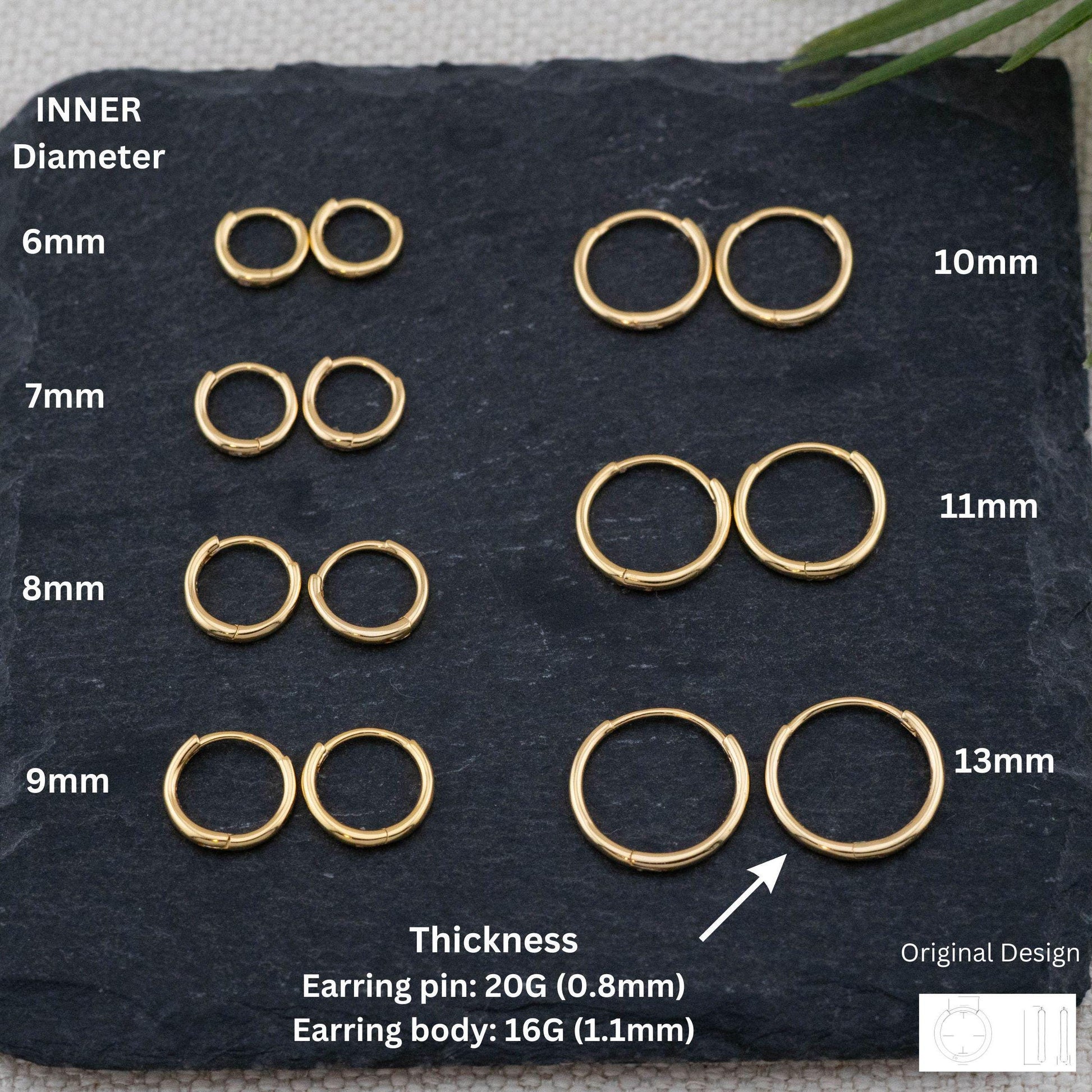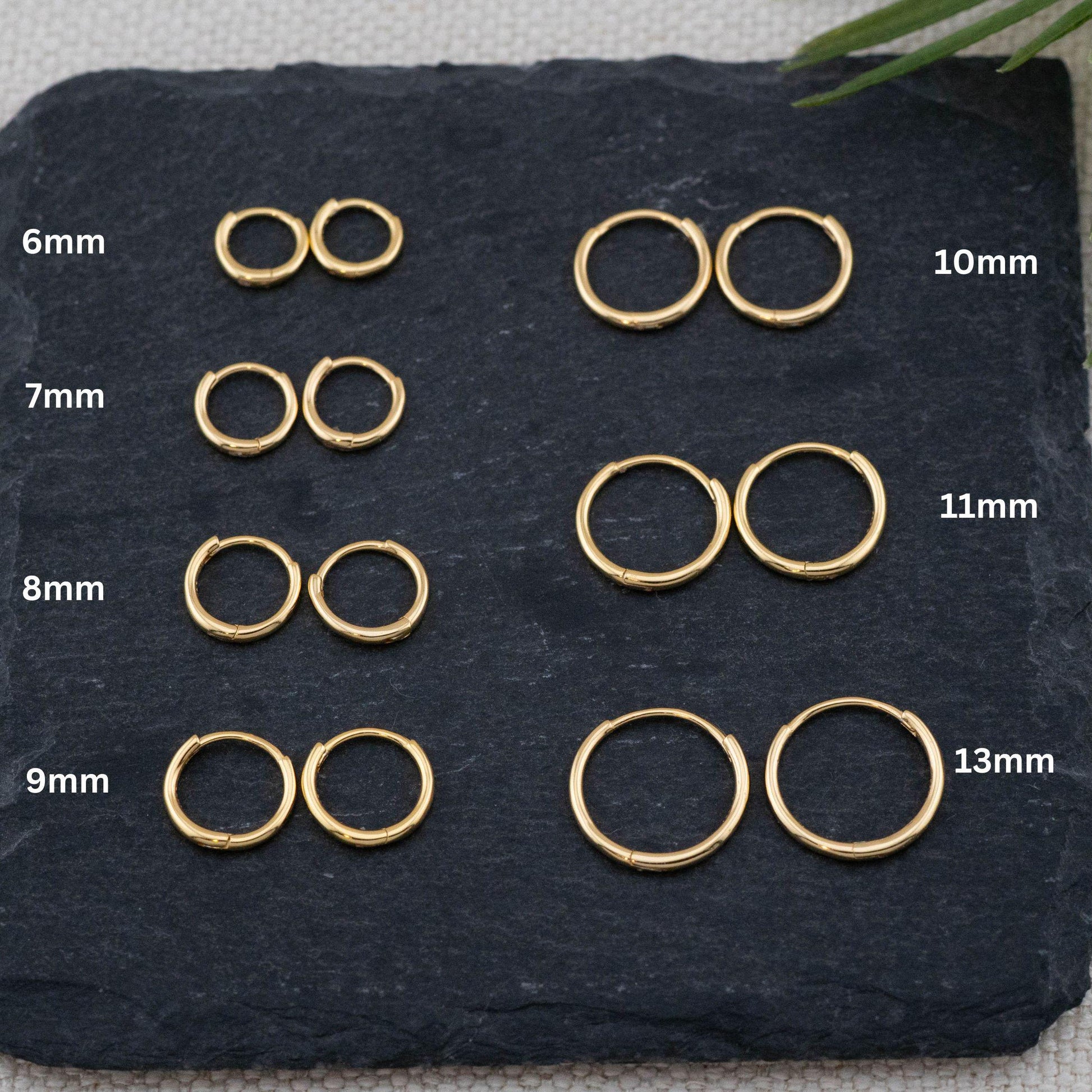 Our tiny small huggie hoop earrings are sold as 2 pairs, or 3 pairs gift ready sets! They are perfect as stacking hoop and their minimalistic thin design with hinged closure make it great for everyday wear! Made of sterling silver, or 18K gold filled (core material sterling silver), hypoallergenic, tarnish free and waterproof !
