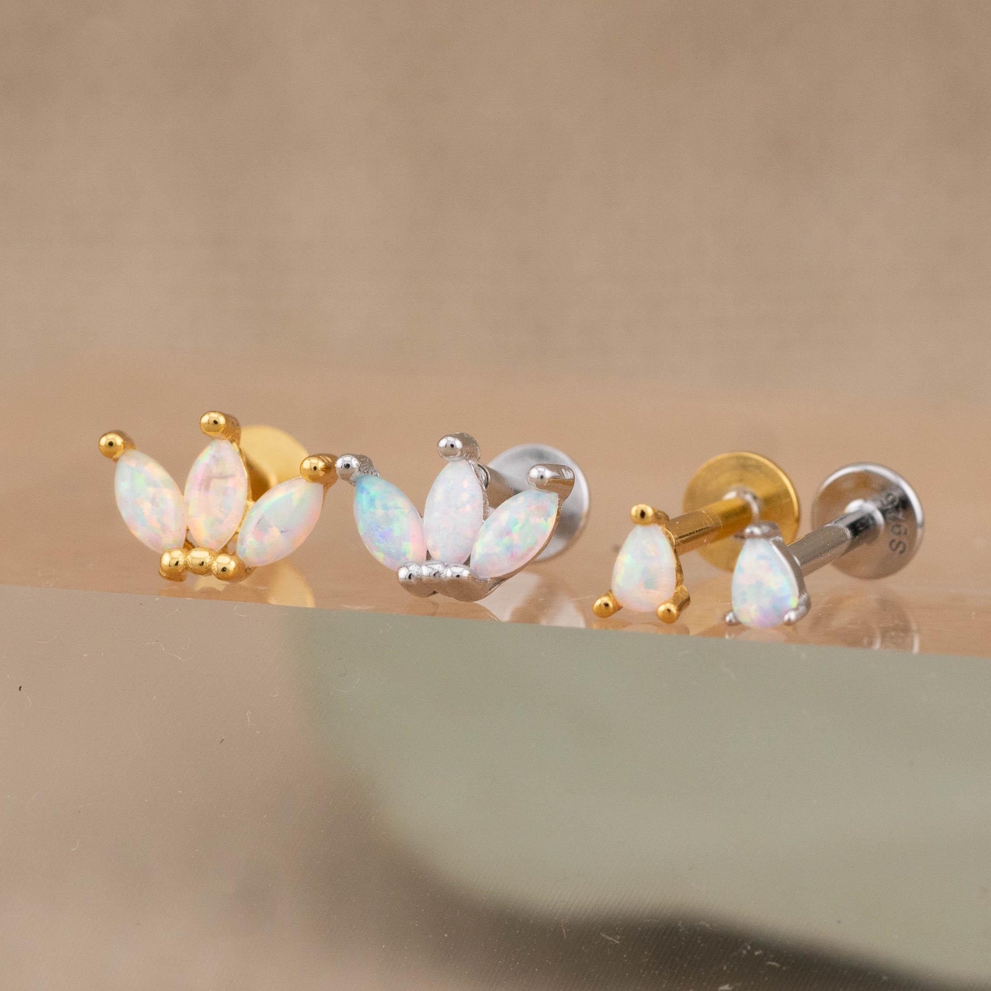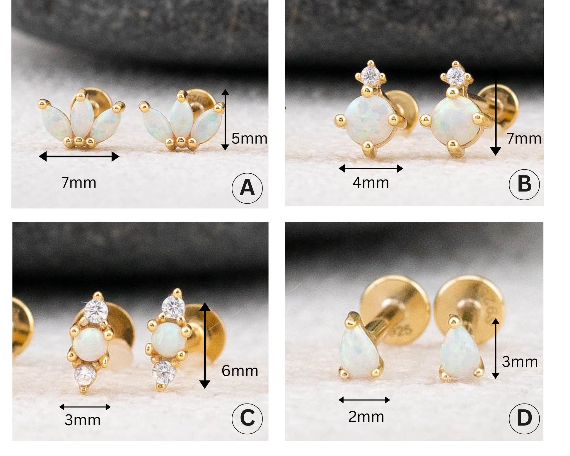 Our opal flat back earrings are dainty and completely waterproof! The 18G flat back design ensures comfort fit, making them ideal for everyday wear as well as special events.