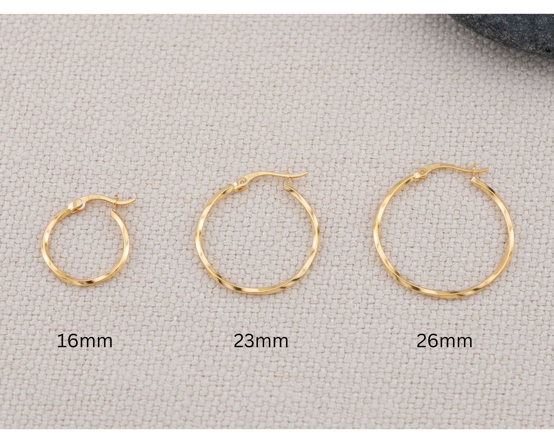 Our dainty hoop earrings set is here! These classic hoops come in a gently twisted shape, adding a touch of effortless playfulness to any of your outfits. They are lightweight yet durable, making them a great choice for all-day wear. These hoops are hypoallergenic, tarnish-free, and waterproof!